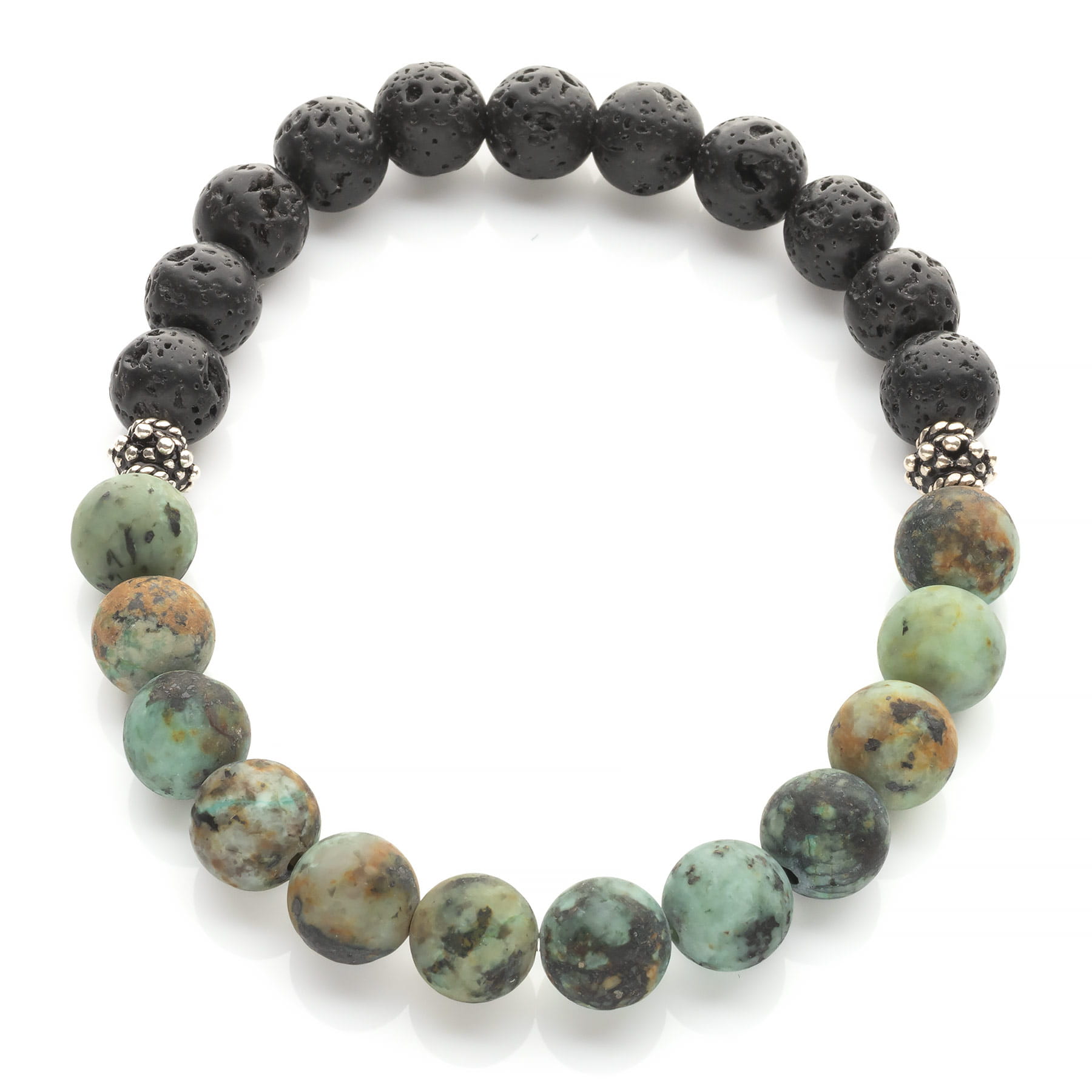 Męska bransoleta z turkusu afrykańskiego i lawy