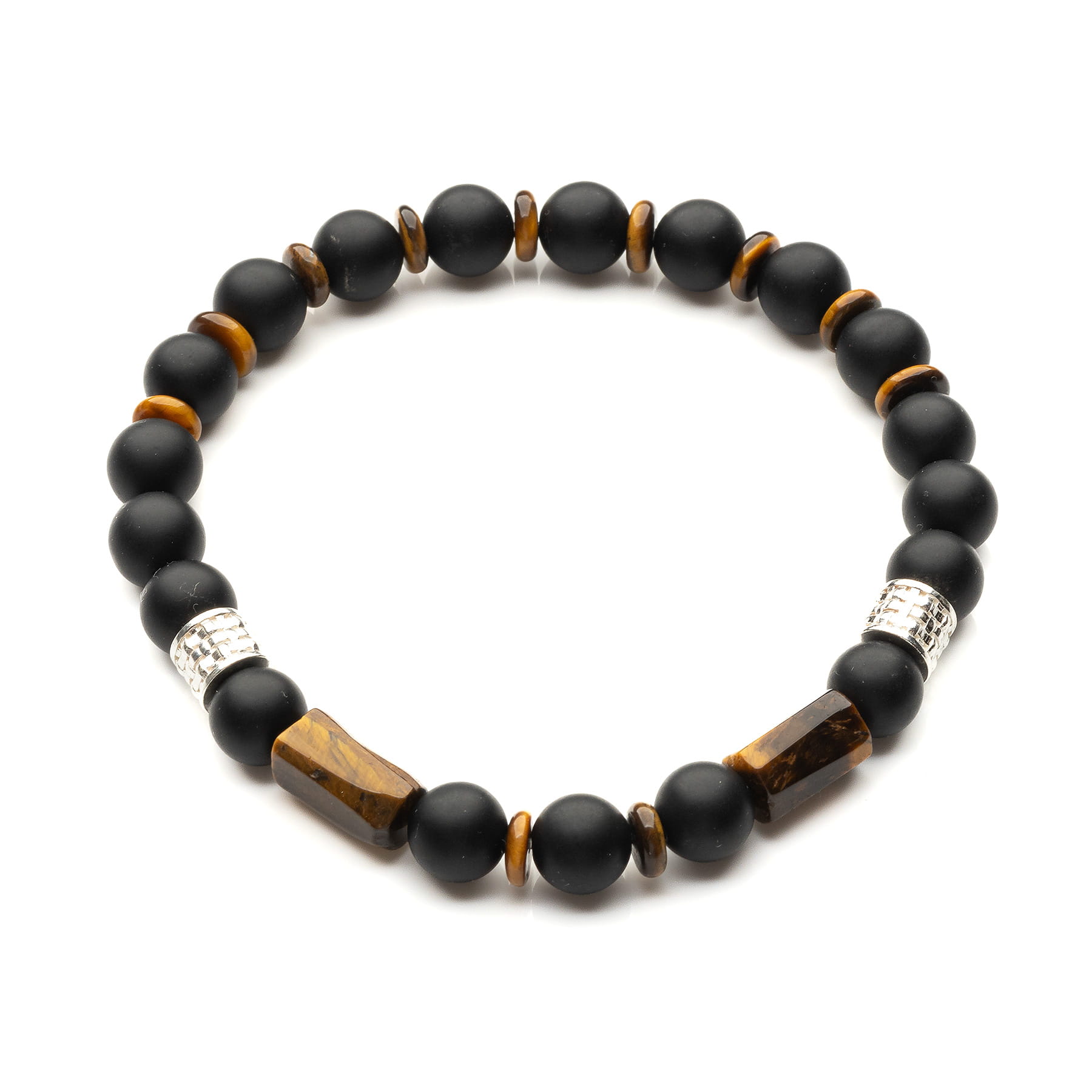 Elastyczna bransoleta z matowego onyksu, tygrysiego oka i srebra