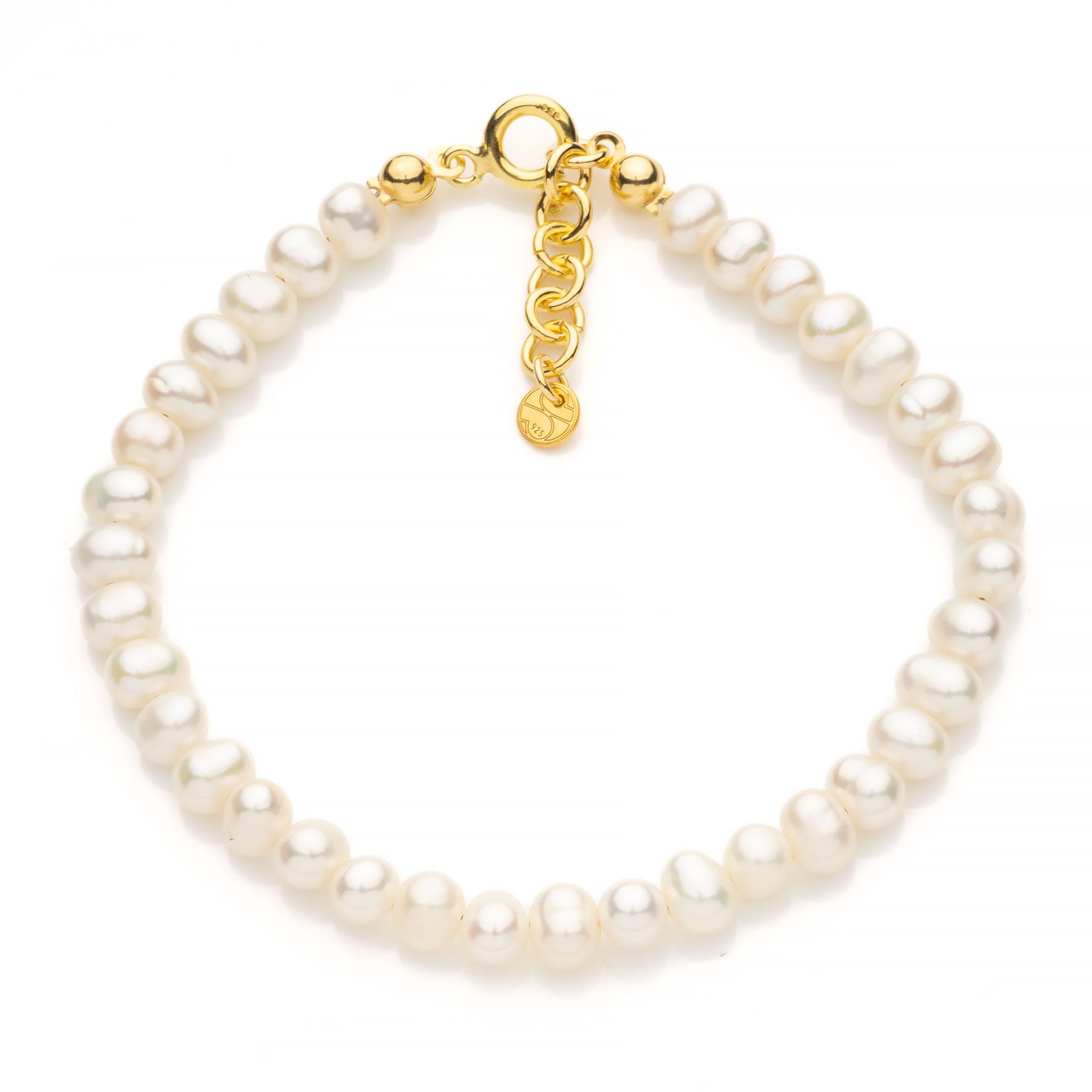 Klasyczna bransoletka z białych pereł słodkowodnych i srebra pozłacanego