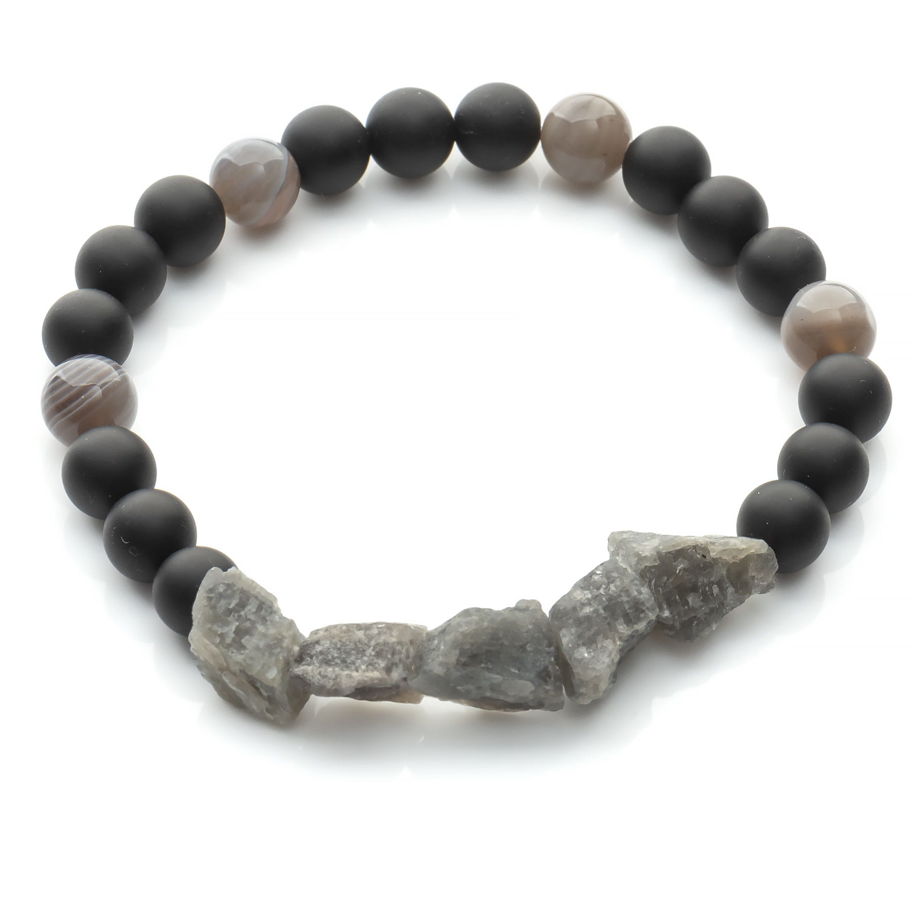 Męska bransoleta z onyksu, agatu szarego i labradorytu