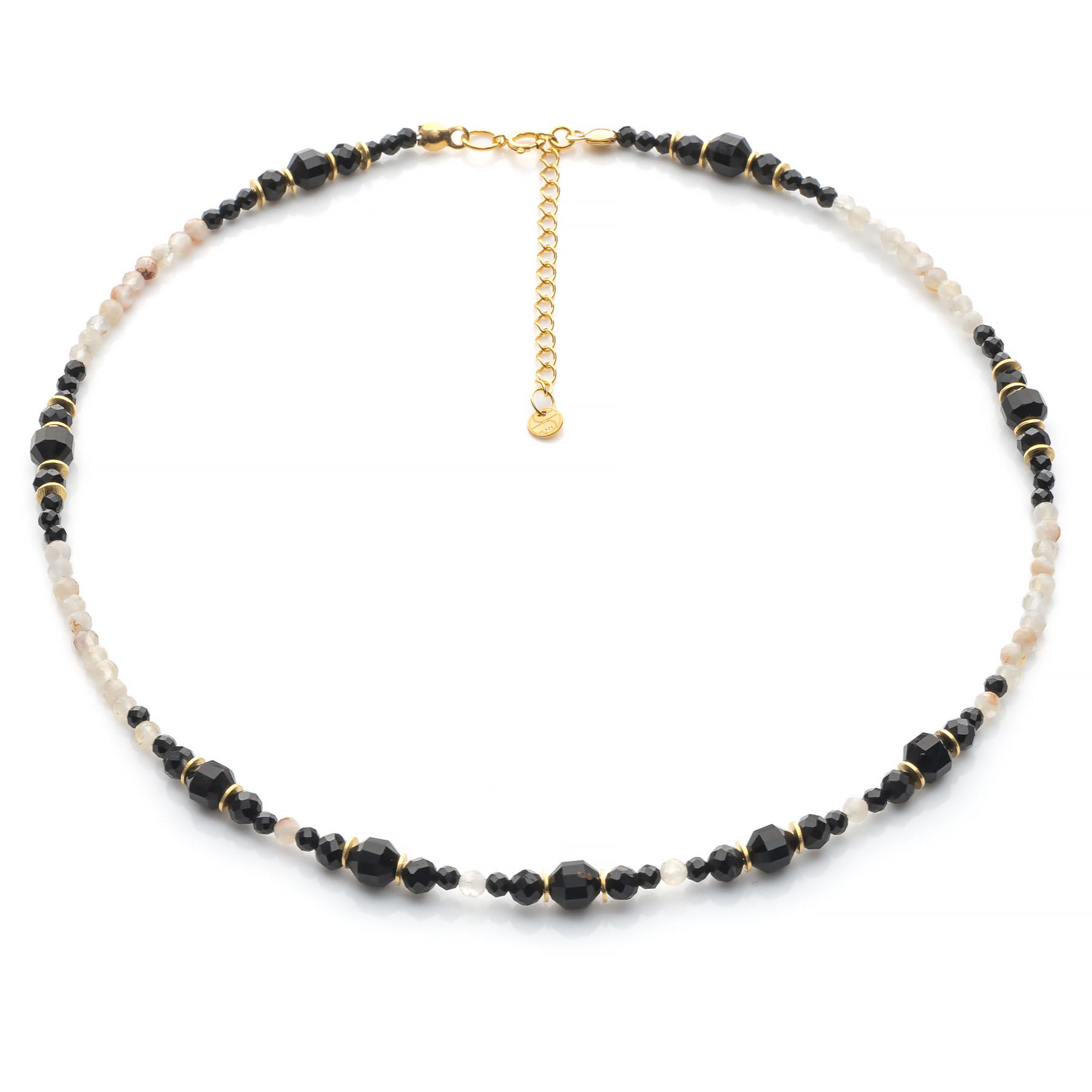 Naszyjnik z czarnego turmalinu klasy AAA i cytrynu, srebro pozłacane