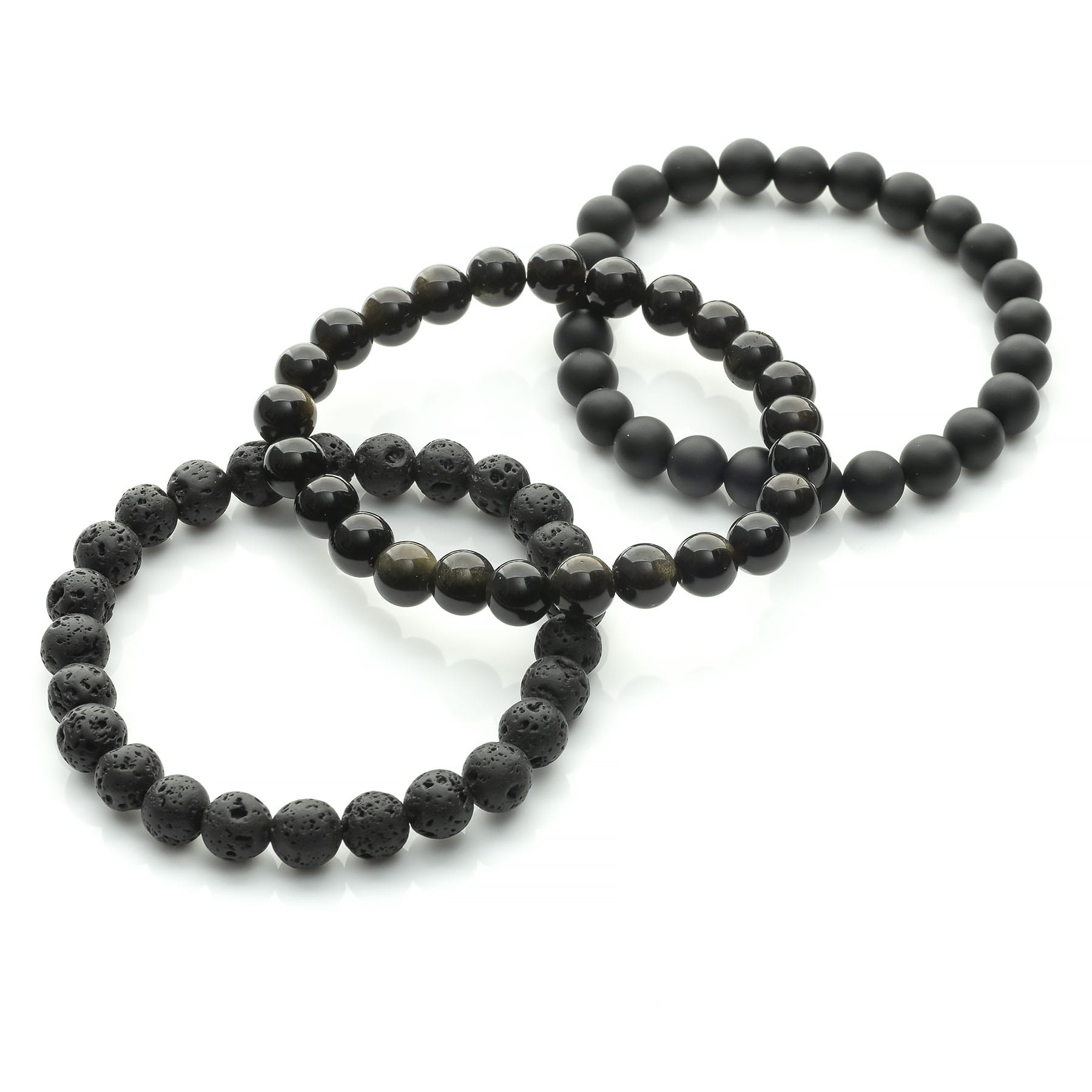 Zestaw (nie)zwykłych bransolet męskich z lawy wulkanicznej, onyksu matowego i obsydianu złocistego