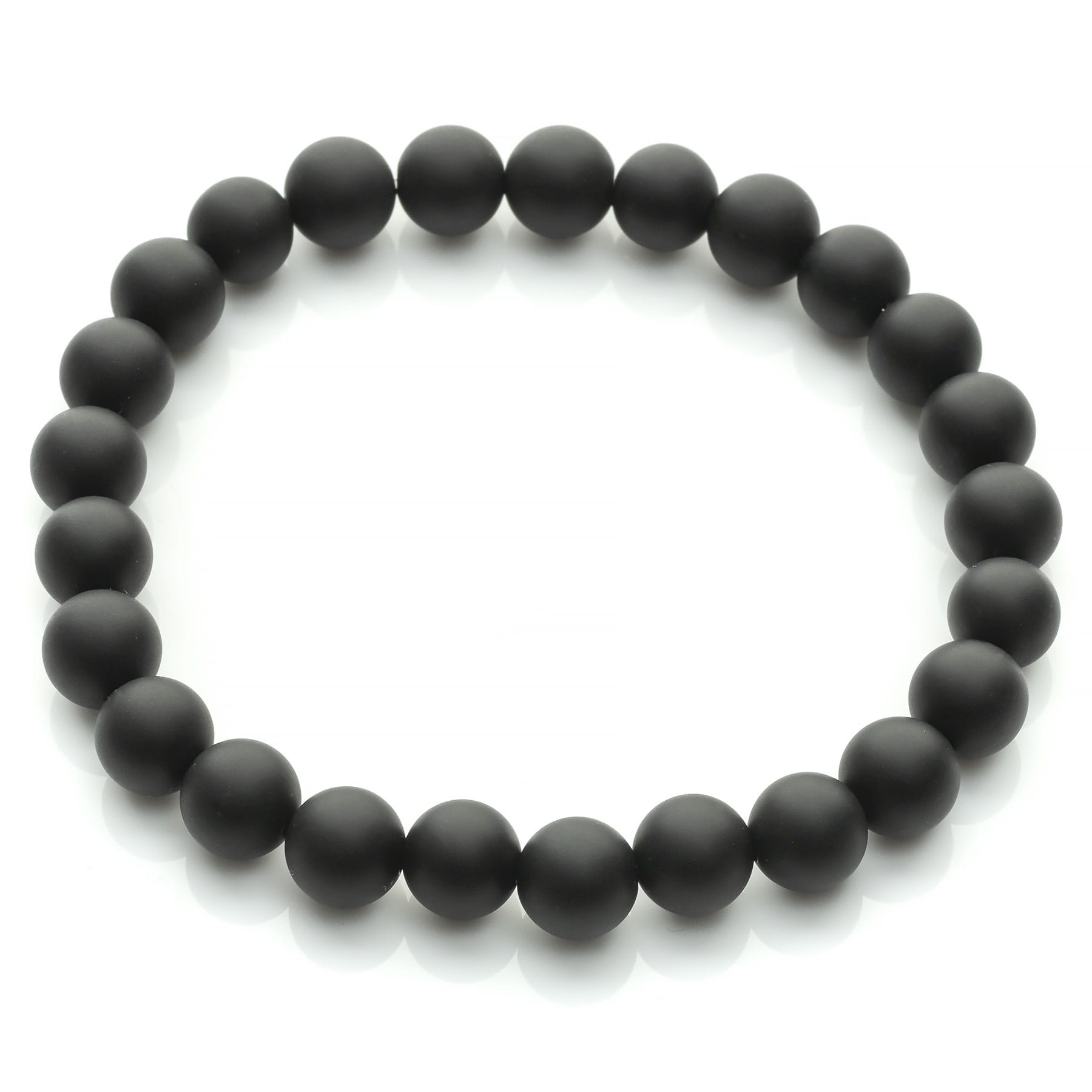Ręcznie wykonany zestaw podstawowych bransolet męskich z kamieni naturalnych o średnicy 8mm: onyks matowy, lawa wulkaniczna i obsydian złocisty. Jednolite bransolety stanowią idealną bazę do łączenia z bardziej wyszukanymi wzorami biżuterii męskiej z kamieniami szlachetnymi i srebrem, ale równie dobrze prezentują się bez dodatków. Obsydian Złocisty jest jedynym występującym w przyrodzie naturalnym szkłem, zbudowanym w całości ze szkliwa wulkanicznego. Szlifowane, okrągłe kamienie na pierwszy rzut oka są czarne, ale w słońcu uwidaczniają się przepiękne złoto-karmelowe smugi, które tworzą metaliczny odblask powstający za sprawą pęcherzyków powietrza. Nadaje to wyjątkowego, trójwymiarowego efektu. Lawa wulkaniczna o nieregularnej strukturze, posiada liczne wrostki oraz ubytki co jest jej charakterystyczną cechą ukształtowaną przez naturę. Zaś główną cechą Onyksu, ukształtowaną przez naturę są równo ułożone warstwy: dolna- czarna i górna-biała. W prezentowanym zestawie użyto kamieni okrągłych w odcieniu głębokiej, matowej czerni. Dobry pomysł na prezent dla bliskiej osoby, gdyż w przypadku biżuterii elastycznej nie musisz znać dokładnego rozmiaru nadgarstka a klasyczne wzory wpisują się w większość gustów wielbicieli biżuterii wykonanej z surowców naturalnych. Produkt został zaprojektowany i wykonany ręcznie w Polsce. Opakowanie widoczne na zdjęciu wliczone jest w cenę.